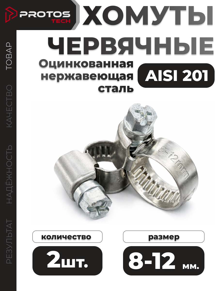 PROTOS Хомут 12мм x 22мм от 12мм до 22мм, 10 шт., Нержавеющая сталь