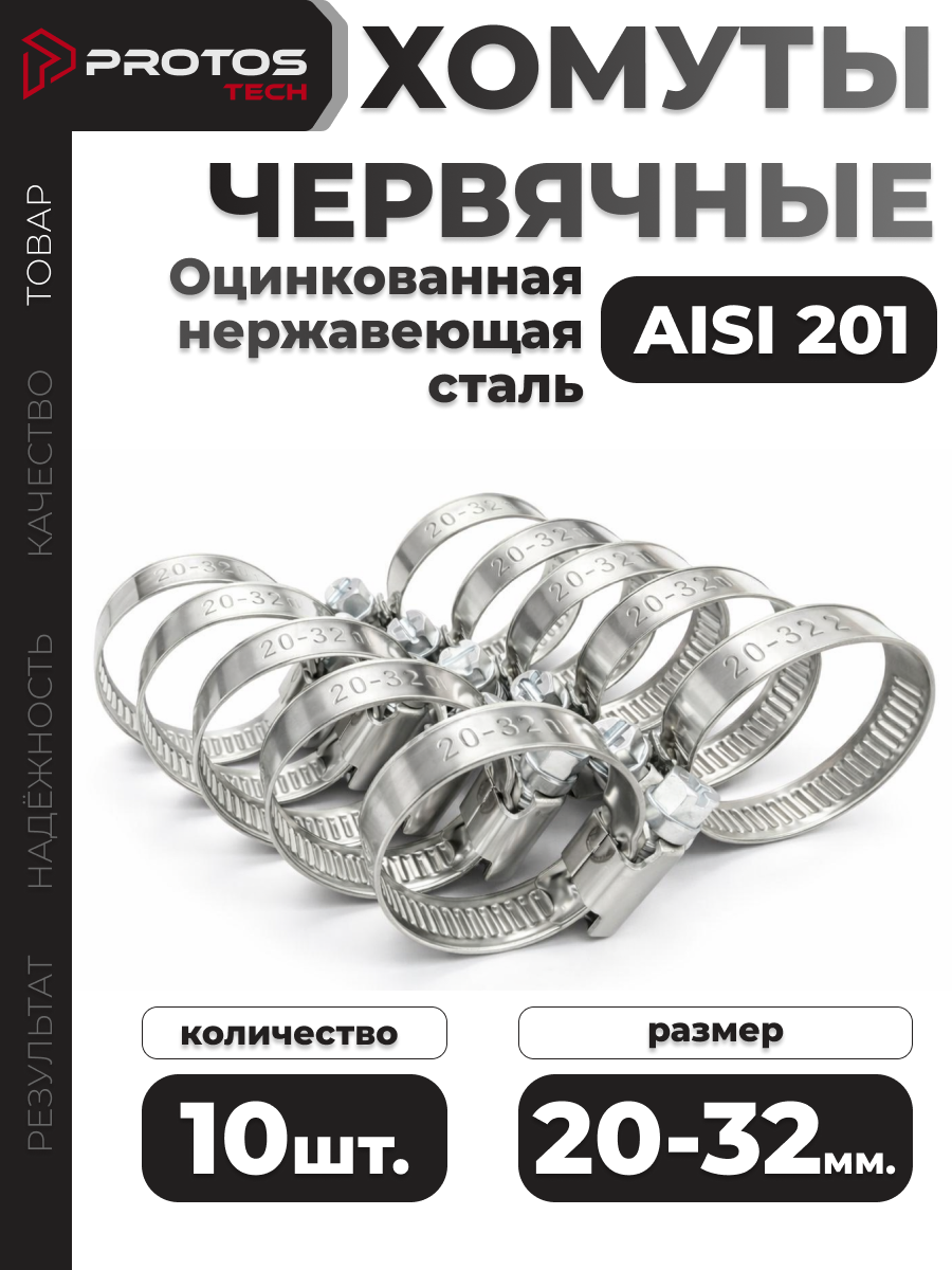 PROTOS Хомут 20мм x 32мм от 20мм до 32мм, 10 шт., Нержавеющая сталь