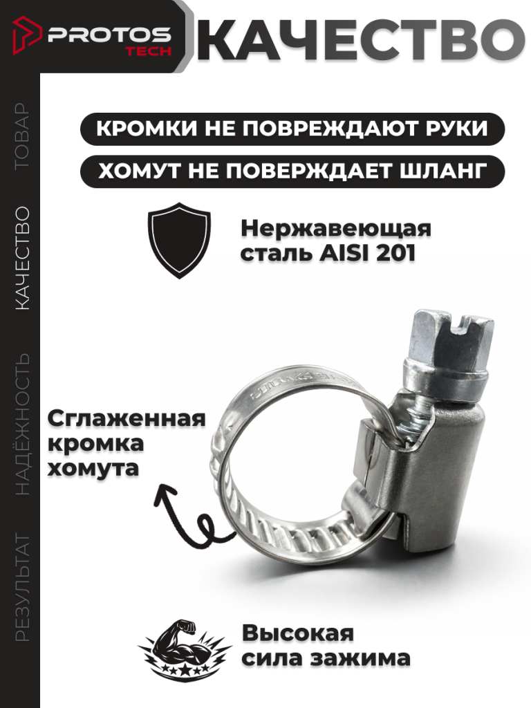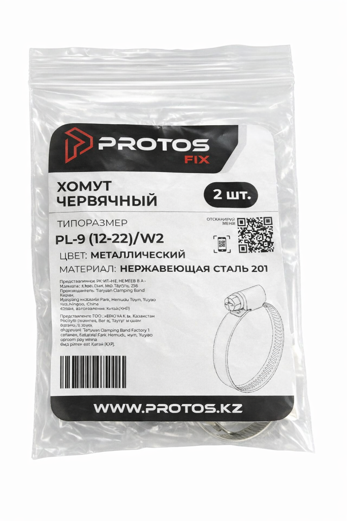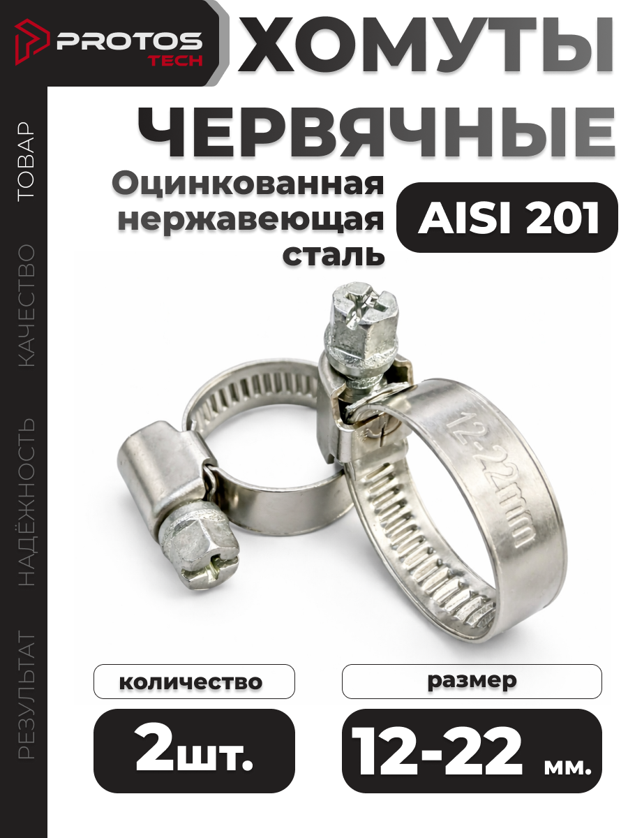 PROTOS Хомут 12мм x 22мм от 12мм до 22мм, 2 шт., Нержавеющая сталь